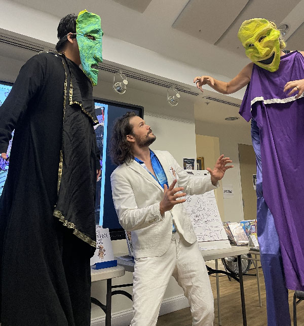 Extending a warm thank you to the Delaware Division of Libraries and the Institute of Museum and Library Services for having me on as their Summer Performer. Also thanks to the Hockessin Bookshelf, The Crafty Reader, and Blue Hen Comic Con for hosting, and to all the patrons who came to listen to me speak on some of the myths I've helped craft across Percy Jackson, Heroes of Olympus, and the Kane Chronicles. And cheers to the hundreds of demigods who posed for portraits and wielded swords, tridents, or bows (see the GIF at bottom left). Want me at your library or school? Inquire at: orpheus@orpheusartist.com. (Giants not gauranteed.)