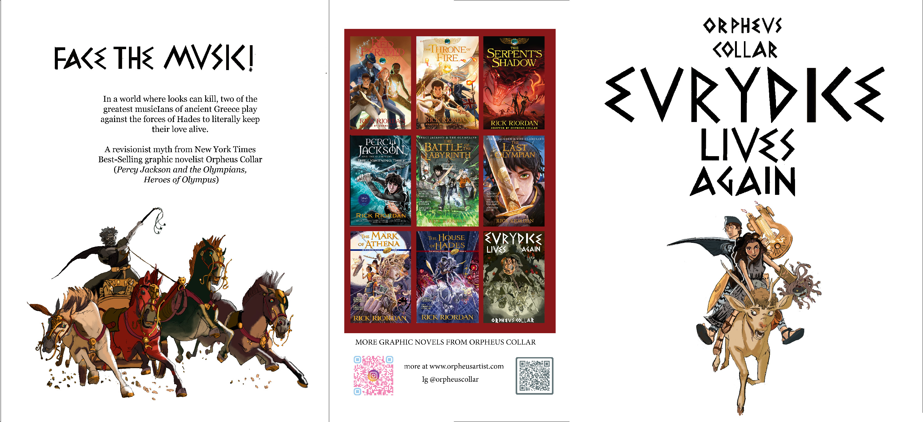 Eurydice Lives Again is a 160-page graphic novel designed as a revisionist sequel to the myth of Orpheus and Eurydice. The original myth didn't end well for the pair, and as an Orpheus-named person it's always been an aim to give them a better ending. After years adapting of mythology to contemporary settings through Percy Jackson, Heroes of Olympus, and The Kane Chronicles, it felt right to return to the ancient world itself and tell a distinctly modern story set in deep antiquity.